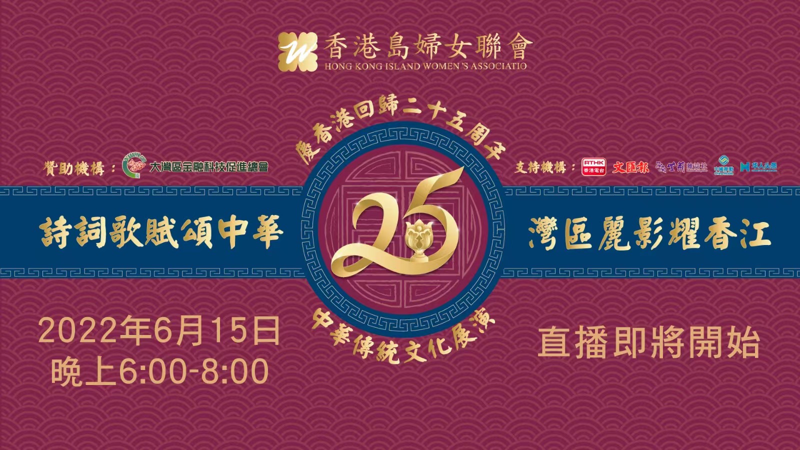 19:30-19:40 香江花月夜 深港庆回归-诗词歌赋中华文化大汇演(分别展示不同主题中华传统文化,包括书法、旗袍、舞 蹈、太极、武术、民乐)