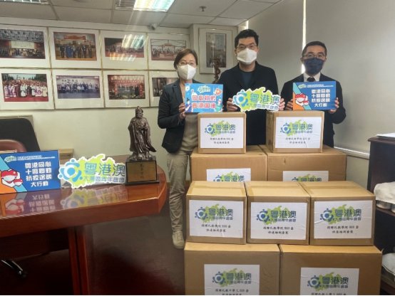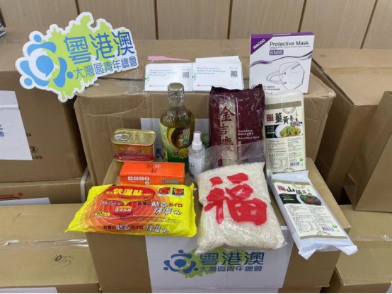 “粤港同心·十区联动·抗疫送暖”行动抗疫物资由粤港澳大湾区青年总会、油塘西区吕东孩区议员办事处、江门市侨联江门侨青会、广东省青年企业家联合会、香港友好协进会、香港青年联会捐赠提供。