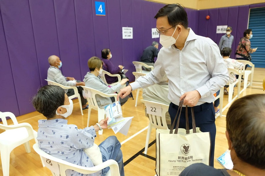 刘业强又说,自第五波疫情暴发至今,中央全力支持本港抗击疫情,乡议局亦积极动员配合特区政府的抗疫措施,从紧急拨款100万、搜罗近40万套快速测试剂、组织抗疫义工队,到安排外展队落乡施打疫苗,务求从不同层面支援乡民防疫抗疫。他又称,未来乡议局会继续尽最大努力,结合社区资源,做好支援乡郊抗疫工作,配合特区政府尽快稳控疫情。