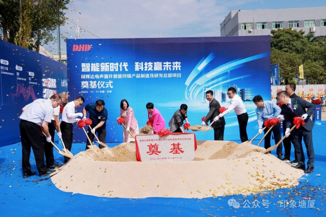 紫荆杂志(记者彭彦)11月13日东莞报道:东莞市塘厦镇深入开展“投资年”和“大招商”行动,推动新项目、好项目、大项目建设,助力东莞高质量发展。11月11日,得辉达电声器件智能终端产品制造及研发总部项目奠基仪式在东莞市塘厦镇沙湖社区举行。镇领导、相关部门和沙湖社区负责人等参加活动,并为项目开工培土奠基。