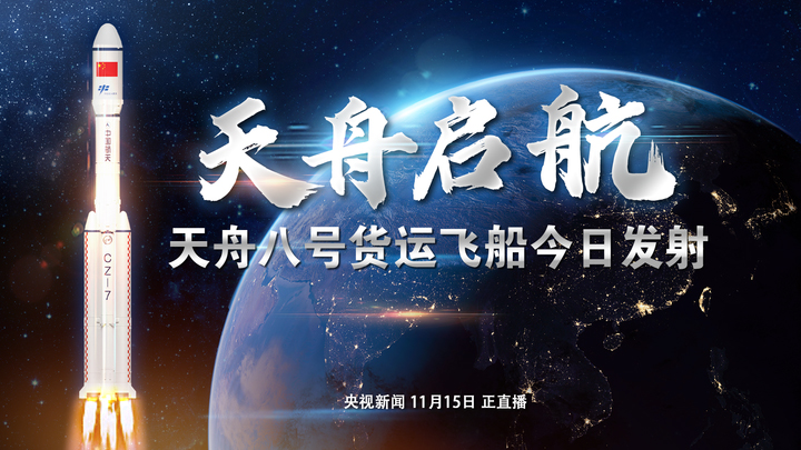 据中国载人航天工程办公室消息,目前,长征七号遥九运载火箭已完成推进剂加注,瞄准北京时间11月15日23时13分,在我国文昌航天发射场发射天舟八号货运飞船。