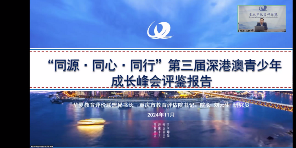 11月23日下午,第三届深港澳青少年成长峰会成果展在香港培侨书院成功举办。本届峰会得到了教育部港澳臺事务办公室、广东省教育厅等30个部门的大力支持。为全面评估活动的质量和效果,华夏教育评价联盟受委托对参与峰会子活动的三地学生进行了全过程、全领域的科学评鉴,由联盟秘书长单位重庆市教育评估院与龙华区教育局合研发并组织实施。通过线上问卷调查,结合与PISA等国际项目的比较、借鉴,构建综合反映学生发展状况的数学模型,深入挖掘数据背后的成长规律和趋势。成果展上,华夏教育评价联盟秘书长刘云生以视频解读形式发布了《“同源·同心·同行”第三届深港澳青少年成长峰会评鉴报告》,这是全国首个针对深港澳青少年成长发展的评鉴报告,为深港澳教育合作提供了科学依据,赢得了与会领导和嘉宾的高度赞誉。