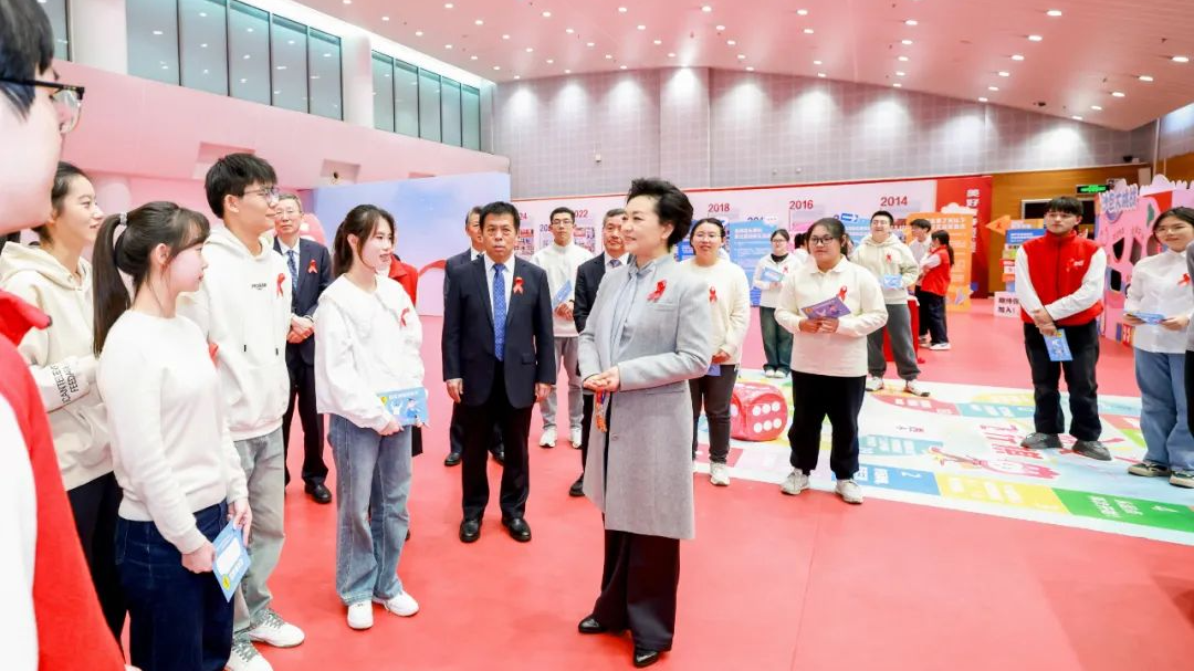 主题宣传活动前,彭丽媛等参观了“美好青春我做主”红丝带青春校园行十年历程展示,了解京津冀高校防艾宣传工作成效,同参加校园防艾宣传活动的大学生亲切交流,慰问医务人员、志愿者等,勉励大家继续携手努力,共同参与艾滋病防治工作,传递更多健康向上的防艾正能量,让艾滋病远离校园。