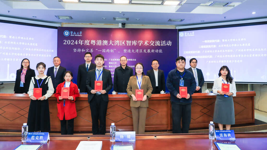 11月30日,在中央政府驻港联络办研究部、中央政府驻澳联络办研究室等部门指导下,由广东省粤港澳大湾区智库联合会和暨南大学主办,暨南大学一国两制与基本法研究院承办的2024年粤港澳大湾区智库学术交流活动在广州举行。