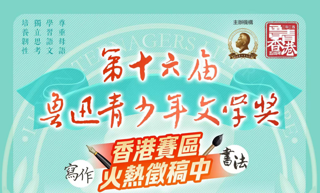 2025年是鲁迅先生诞辰144周年,第十六届鲁迅青少年文学奖香港赛区征稿12月17日正式启动。征稿截止日期为2025年5月20日。