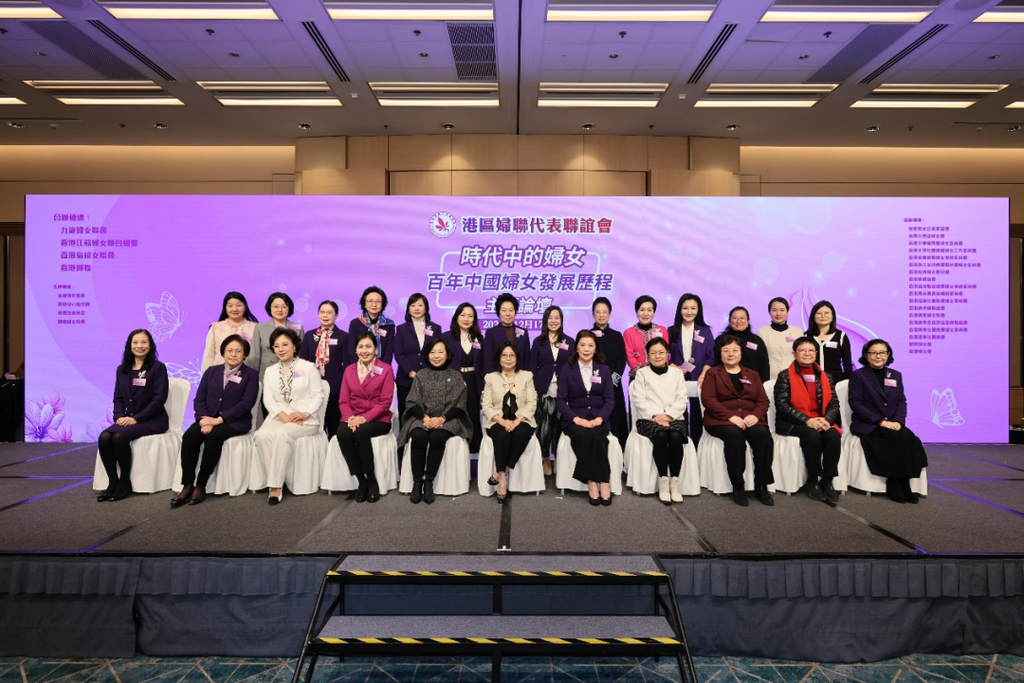 为庆祝中华人民共和国成立75 周年及港区妇联代表联谊会成立15周年,港区妇联代表联谊会于2024 年12月17日(星期二)在香港会议展览中心盛大举行“时代中的妇女——百年中国妇女发展历程”主题论坛。论坛邀请四位香港及内地具知度且有代表性的女性讲者,集合九龙妇女联会、香港江苏妇女联合总会、香港岛妇女联会、香港妇联4个合办机构和18个协办机构、4个支持机构和台下约600位来自全港各妇女团体的代表一同探讨当代妇女的使命担当。