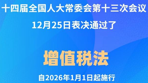 十四届全国人大常委会第十三次会议12月25日表决通过了增值税法