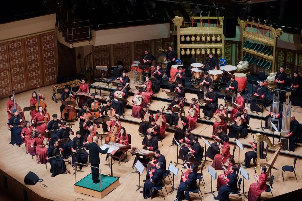 钟声悠扬、罄音铿锵,12月25日和26日晚,“国风国韵飘香江”系列活动迎来2024年收官之作,由中央民族乐团创编并演绎的音乐会《颂·黄钟大吕》在香港文化中心成功上演。两千多位香港观众走进音乐厅,跟随古老的“十二律吕”乐律体系的指引,聆听纵贯千年的盛世之音。