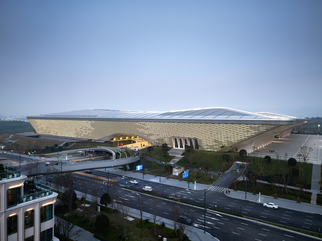 “中国重庆·科学会堂”是重庆科学城首座大型综合性会展会议建筑,不仅填补了会展综合体空白,更壮大了重庆高能级会展市场主体,助力培育高质量会展产业聚集区。