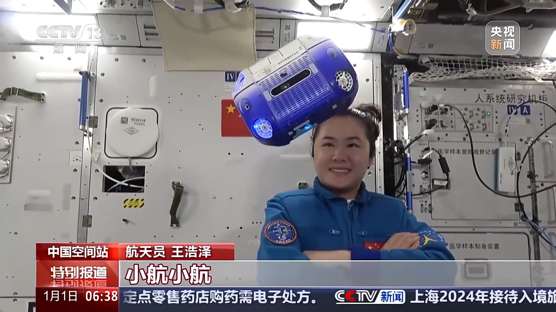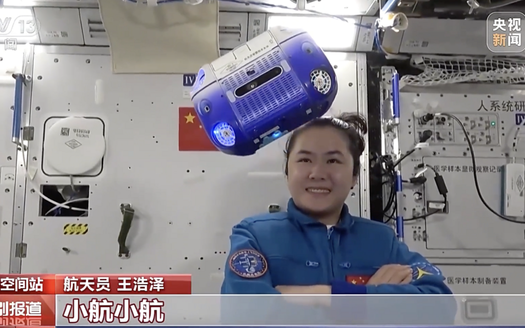 中国人在太空发回新年祝福,航天员王浩泽展示了空间站智慧助手小航,它可以在空间站内飞行,根据口令上升下降,后续小航还能通过升级,实现舱内巡检、物资管理、产品状态检查、答疑解惑等功能。