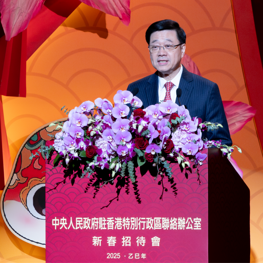 中央政府驻港联络办2025年新春招待会今晚(1月17日)在香港会议展览中心三楼大会堂举行。行政长官李家超致辞表示,2024年是新中国成立75周年,香港在2024龙年也取得一系列令人鼓舞的成绩。