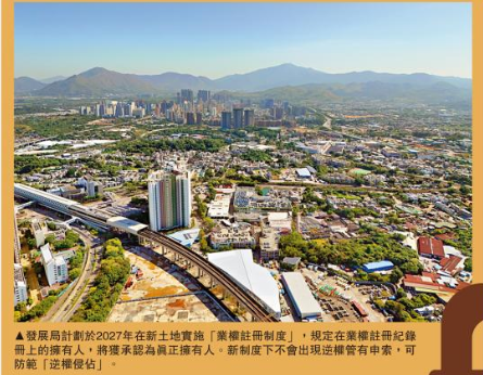 香港发展局建议修订《土地业权条例》,在新土地实施业权注册制度,将业权注册纪录册上的拥有人等同最终业权人,简化物业转让程序。新土地注册制度预计2027年上半年实施,届时逆权侵占将不再适用于新土地,符合相关规定的买家,即使物业转移曾牵涉第三者欺诈,仍可享有不可推翻的业权。