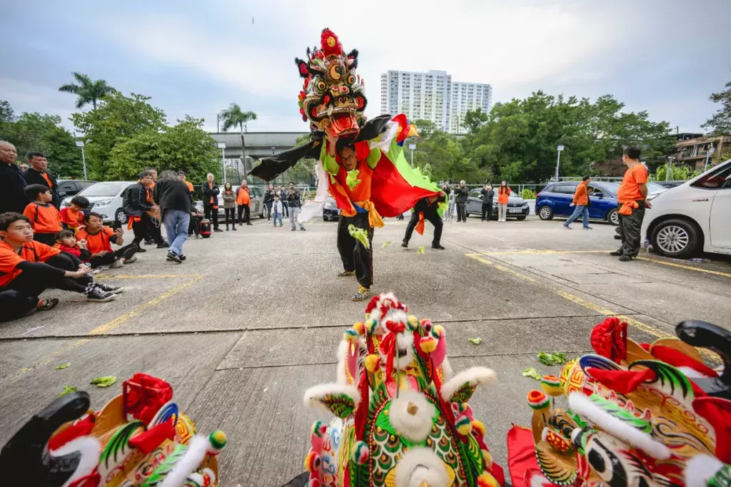 “嗬——哈——”或沉稳或稚嫩的声音此起彼伏,马步、跳步、丁字步……不同步法快速变换着。每周,西贡坑口的村民都聚在空地上练习舞麒麟。