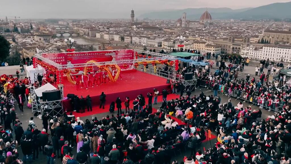 在中国蛇年元宵节到来之际,一场精彩纷呈的庆典活动9日在意大利历史文化名城佛罗伦萨举办。