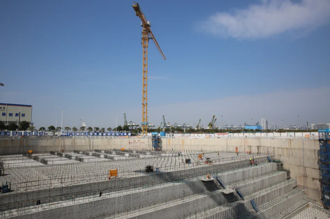 在狮子洋通道 T9 项目施工建设现场,大型机械有序作业,建筑材料整齐堆放,重大项目建设现场一片繁忙,施工人员与机器设备紧密协作,全力推动项目进展。目前,狮子洋通道T9标正在进行东锚碇V型槽施工,预计第一季度完成顶板施工15%;东索塔左右幅塔柱T17节段施工也在紧张施工当中,预计第一季度能完成左右幅塔柱T18节段施工和第一道横梁施工。