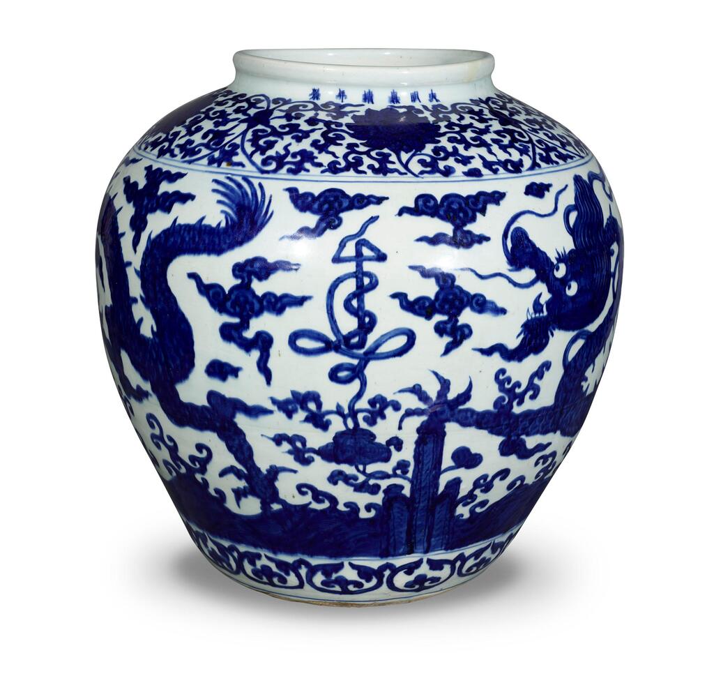 钟棋伟自二○一八年起,已先后16次向香港艺术馆捐赠共超过340件中国文物及书画。他化私为公与大众分享这些传世瑰宝,丰富了香港艺术馆的收藏,亦为研究和推广中国艺术提供珍贵的材料。最新捐赠的文物,均曾于香港艺术馆二○二二年举办的“浮华.仙境——嘉靖皇帝的虚拟世界”展览中展出。当中青花海水云龙纹寿字罐器型硕大,烧制极难,一对行龙之间饰有以草书一笔写成的“寿”字,为明代嘉靖时期象征福寿延绵的常见纹饰,此大罐青料色调蓝中泛紫,发色浓艳,展现出鲜明的时代特征。这些文物不仅工艺精湛,更见证了晚明的艺术特色与文化面貌,具有重要的历史与艺术价值。