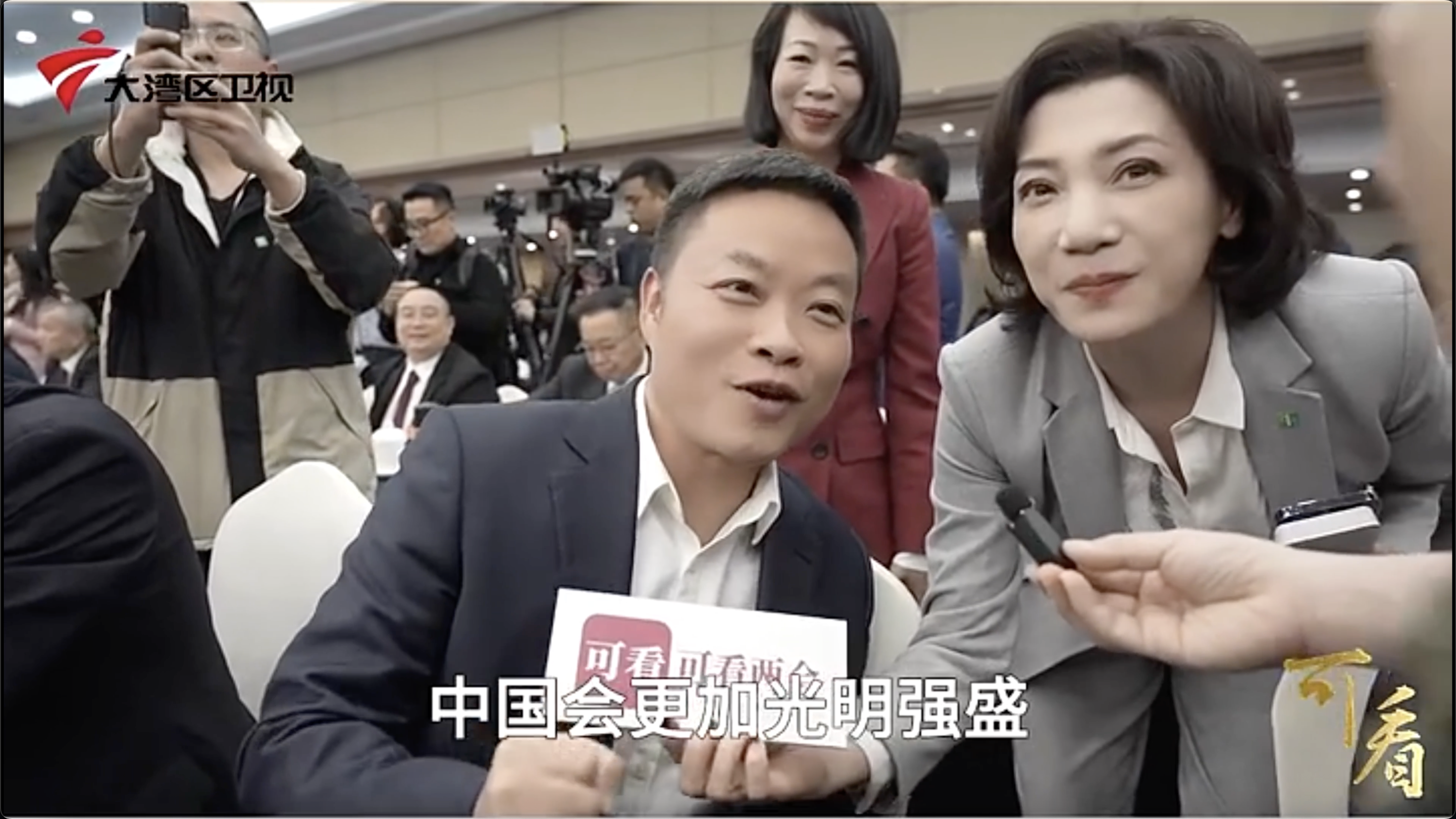 3月6日下午,十四届全国人大三次会议广东省代表团在住地举行全体会议,继续审议政府工作报告,审查计划报告和草案、预算报告和草案,来自107家境内外媒体的267名记者到会旁听。全国人大代表、小鹏汽车董事长何小鹏向记者表示,出席会议很激动,中国定会更加光荣强盛。