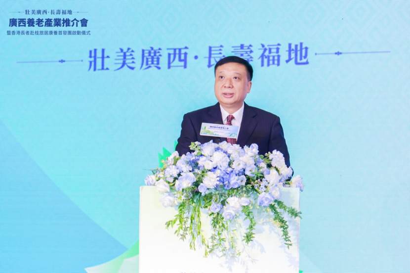 蒋海东在致辞中表示,广西气候宜人、生态环境优良、长寿资源丰富,近年来积极推动旅居养老产业化、特色化、品牌化建设,打造全国旅居养老目的地,取得积极成效。希望桂港两地康养行业发挥好便捷的交通优势、互补的资源优势,加强沟通交流,深化合作发展,共同助推旅居康养产业高质量发展,为实施积极应对人口老龄化国家战略、携手将广西打造成为粤港澳大湾区重要战略腹地作出新的更大贡献。