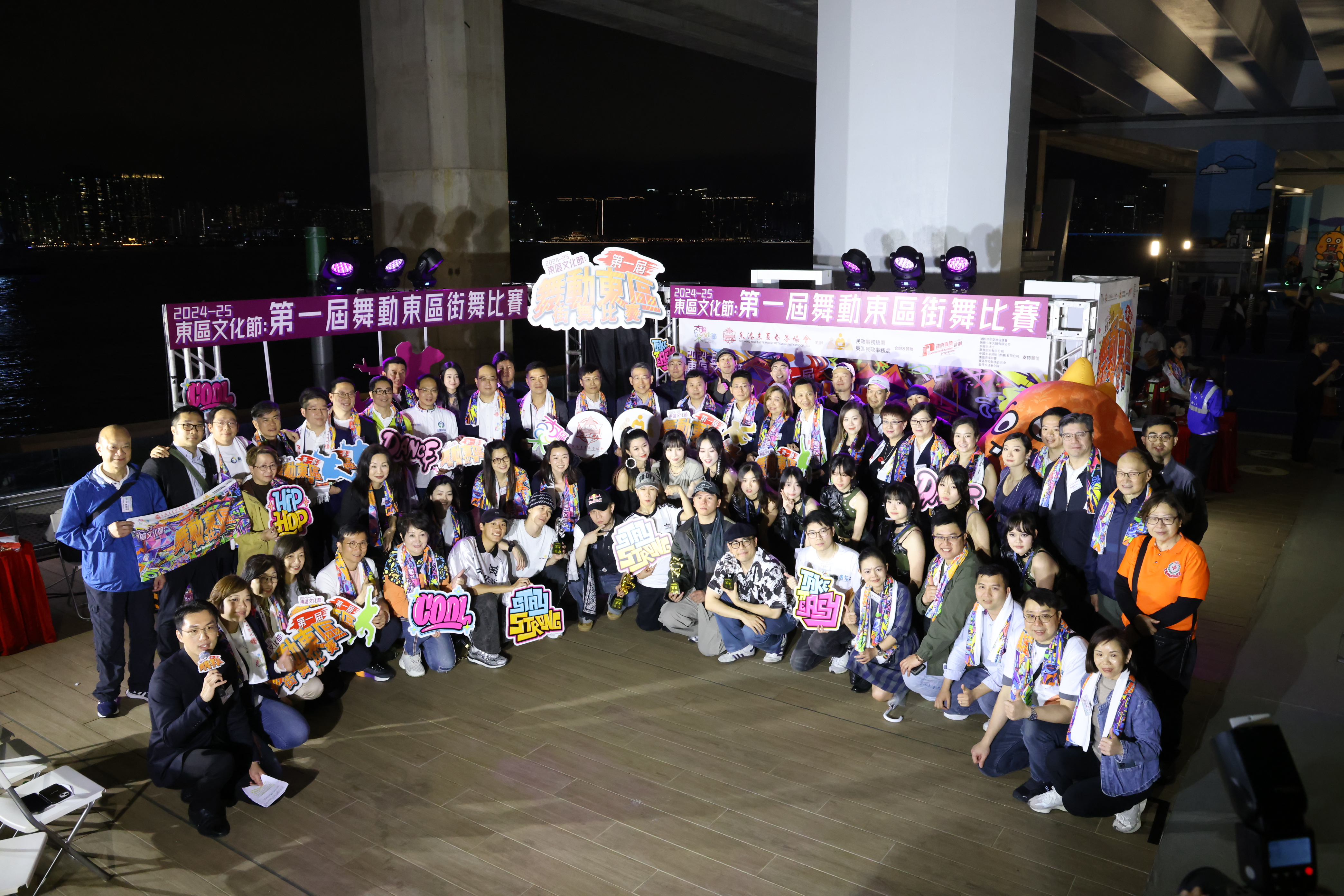 第一届“舞动东区”街舞比赛不仅为本年度文化节呈现精彩帷幕,更标志着东区东岸板道成为香港街舞文化新地标。活动吸引超过百位青年舞者报名参赛,比赛期间,选手们以精湛技巧与独特编排赢得全场喝彩,气氛热闹非凡。历经数小时激烈角逐,最终由青年队伍“孙楠”和“Tsuol,Kayi”分别勇夺Hip Hop 1 on 1及All Style 2 on 2的项目冠军。傍晚举行的颁奖礼更将气氛推至高峰,为社区注入青春正能量,展现东区文化多元魅力。