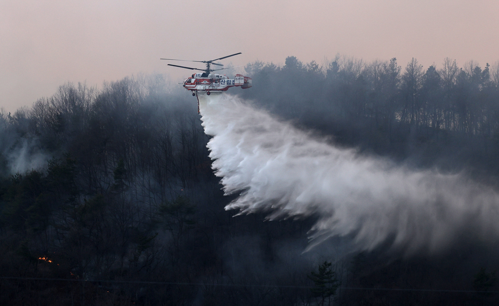 韩国代总统崔相穆当天前往庆尚南道山清郡和庆尚北道义城郡的山火现场视察,要求相关机构紧密协作,全力控制火势。