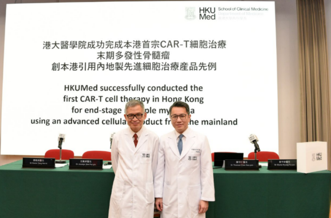香港大学李嘉诚医学院(港大医学院)临床医学学院内科学系与玛丽医院的临床团队,率先采用嵌合抗原受体T细胞(CAR-T细胞)治疗血癌。研究团队最近成功为首名多发性骨髓瘤患者进行此疗法,不仅取得显著疗效,且未出现严重并发症。这项突破性治疗为传统疗法无效的患者带来新希望,也标志著香港医疗发展的重要里程碑。同时,这是香港首次使用内地制造的先进CAR-T细胞疗法,为香港引入内地新型细胞治疗技术开创先例,未来有望惠及更多患者。