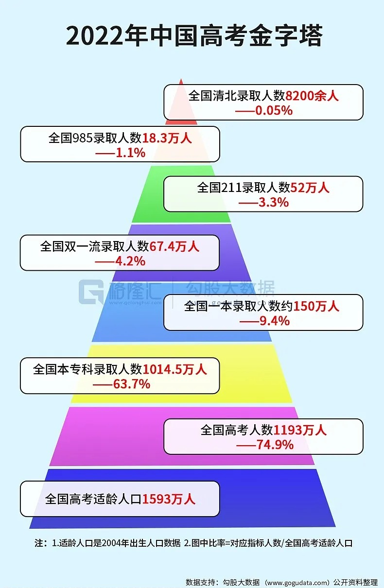 内地初中课程严格遵循国家统一大纲,通常是“3+文科综合/理科综合”。“3”指语文、数学、外语,文科综合涵盖政治、历史、地理,理科综合包含物理、化学、生物。更令人窒息的是“一考定乾坤”的终极审判,全国卷中一道10分选择题的误差,可能让十年寒窗化作平行宇宙的分水岭。2022年高考数据揭示残酷现实,仅0.05%考生能踏入清北学府。