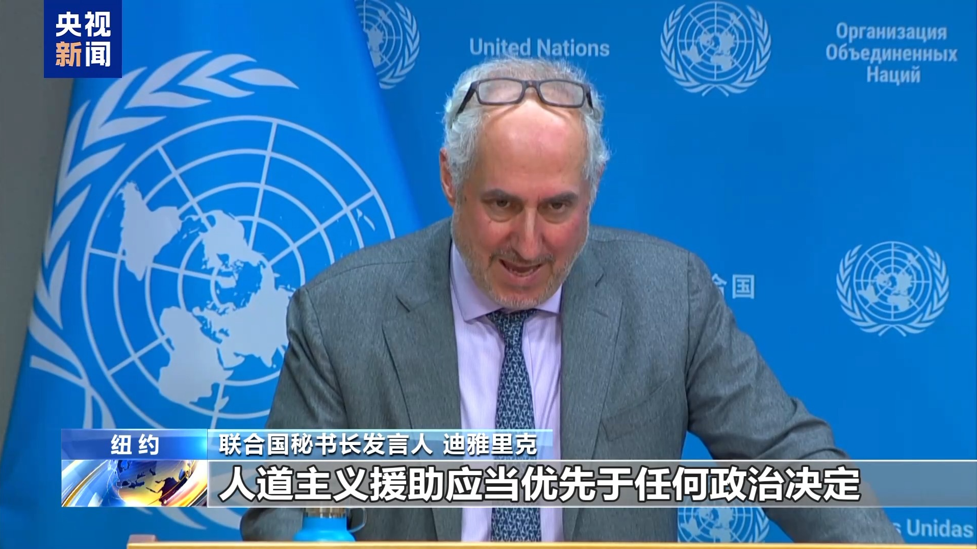 联合国秘书长发言人迪雅里克:人道主义援助应当优先于任何政治决定,我想安理会也通过了相关决议。我们也非常明确地表示,人道援助应当充分提供给所有有需要的人,这是国际法的要求。