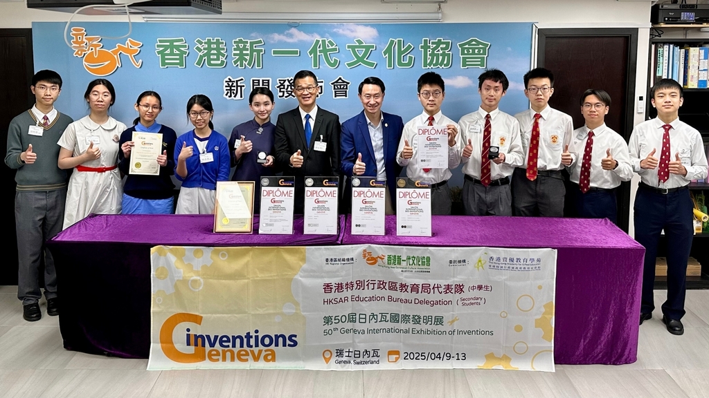 今年,由特区政府教育局资助机构香港资优教育学苑委托香港新一代文化协会,负责组织香港特区政府教育局代表队(中学生)参加“第50届日内瓦国际发明展”。透过去年12月24日举行的“国际科学比赛2025香港赛区选拔赛”先从报名的80个项目(来自34间本地学校和8间国际学校)中,选出17个项目进入决赛。再经过严谨的程序,甄选出5个项目(11位学生)参加“第50届日内瓦国际发明展”(另选出5个项目(10位学生)将于5月中旬赴美国 俄亥俄州 哥伦布市参加“第76届再生元国际科学与工程大奖赛(ISEF)”。因此,今年的香港特区政府教育局代表队(中学生),共有5个项目(来自7间学校、11位同学)。代表队于2025年4月9-13日在瑞士日内瓦Palexpo展览馆参加为期5天的“第50届日内瓦国际发明展”,向国际社会展示香港STEAM教育的成果。