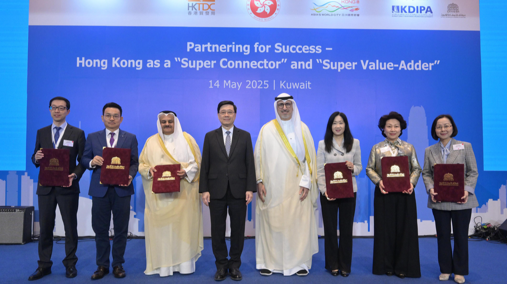 李家超和代表团在科威特出席了由香港特区政府和香港贸发局主办、科威特直接投资促进局和科威特工商协会协办的高层商务午宴,共同见证两地合作迈向新里程。连同13日签署的两份合作备忘录,两地达成合共24项合作备忘录和合作协议,涵盖贸易与经济、投资推广、金融服务、航空与海事、高等教育、法律专业、体育等领域,成果丰硕。