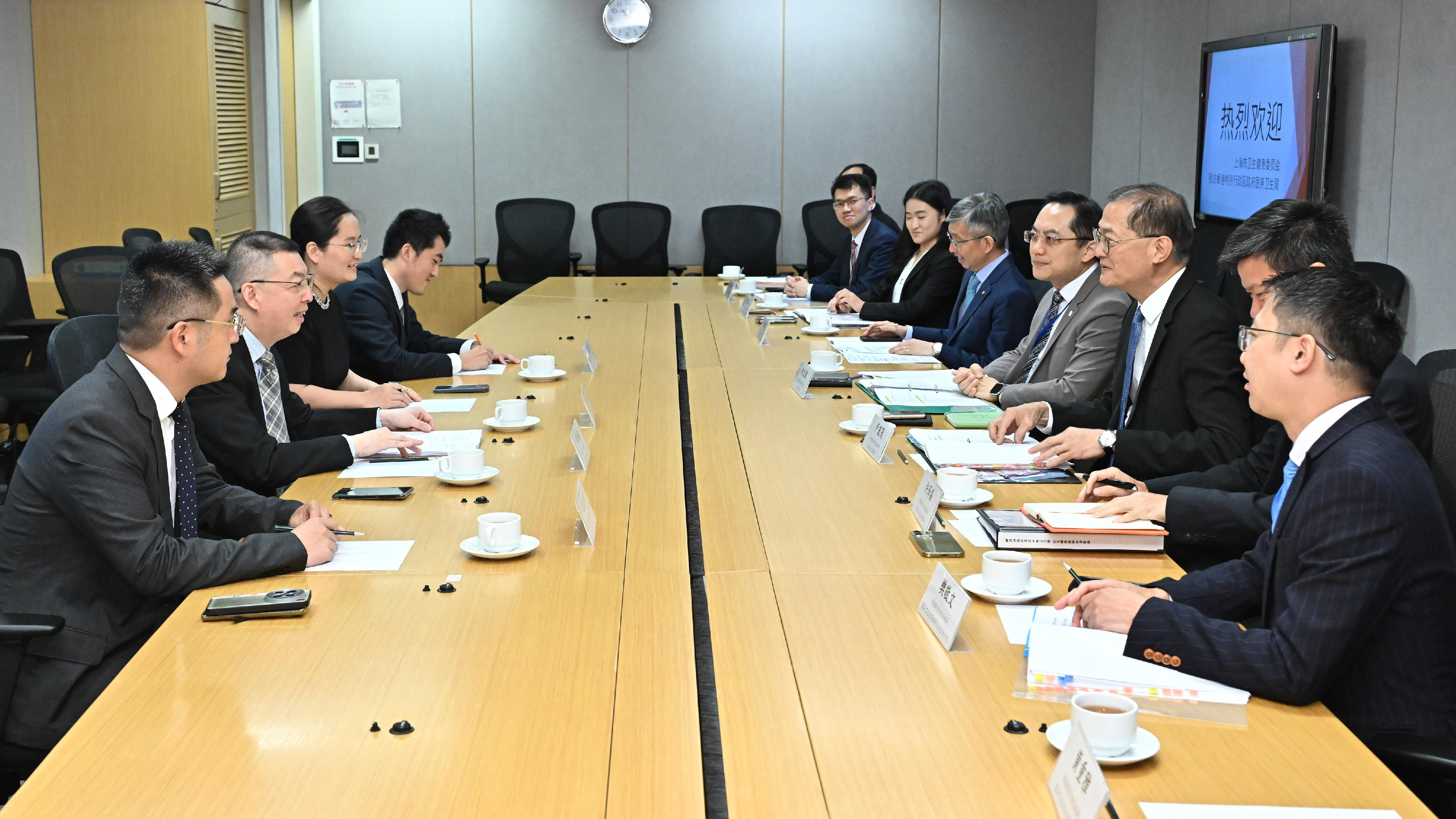卢宠茂教授早上与上海市卫生健康委员会副主任胡鸿毅教授率领的代表团举行会议,就沪港医疗人才交流及中医药标准国际化等议题进行交流。卢宠茂教授说:“香港特别行政区(特区)政府非常重视与内地在各方面的医疗协作,并且按照优势互补、互利共赢的原则,在有利于内地与香港医疗发展的前提下,加强与内地各对接单位在医疗服务发展方面的合作,共同提高医疗水准。特区政府会继续致力促进跨境医疗合作,共同努力推动‘健康中国’这重要国家战略。”