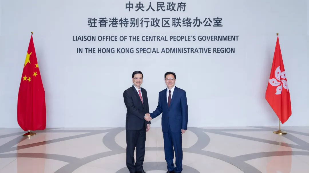 6月2日上午,中联办主任周霁在中央政府驻港联络办会见香港特别行政区行政长官李家超。