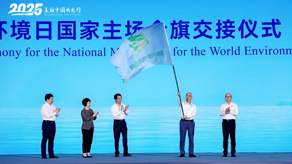 2025年六五环境日国家主场活动今日(6月5日)上午在重庆举行。国家生态环境部相关负责人在活动现场交接仪式上宣布,2026年六五环境日国家主场活动将由粤港澳三地联合举办,并将活动会旗交接给粤港澳三地政府代表,包括广东省人民政府副省长张少康、香港特别行政区政府环境及生态局局长谢展寰、澳门特别行政区政府环境保护局局长叶扩林。