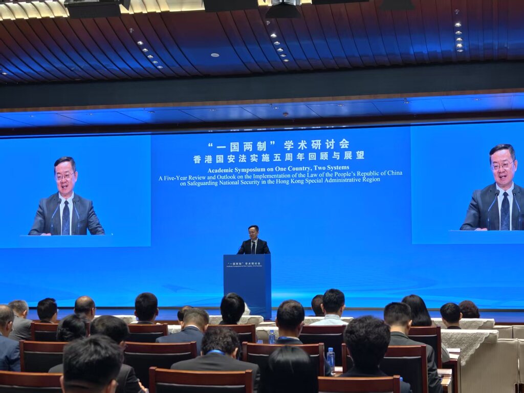 紫荆杂志(记者 庄蕾)北京报道:6月9日,由中国社会科学院主办的 “一国两制”学术研讨会在京召开,主题为“香港国安法实施五周年回顾与展望”。内地、香港、澳门以及来自英国、葡萄牙、马来西亚等11个国家的近100位嘉宾、专家学者参加会议,围绕“国家安全立法理论与实践”、“国家安全与经济发展”、“国家安全与社会治理”等议题展开深入研讨。