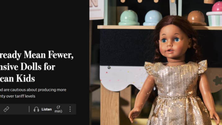 美国《华尔街日报》近日报道称,尽管5月关税暂时下调,但美国玩具业人士普遍认为,特朗普的“预言”正在成为现实——洋娃娃的价格确实在上涨。