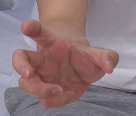 2.刮髌骨,将腿伸直,手成爪状(图2.1)钳抓髌骨内外侧上下推刮髌骨(图2.2)。这个动作特别适合久坐族和中老年人。每次做3—5分钟。