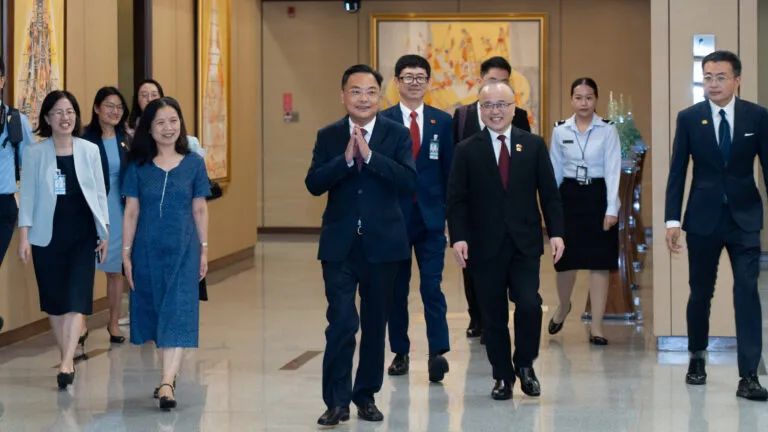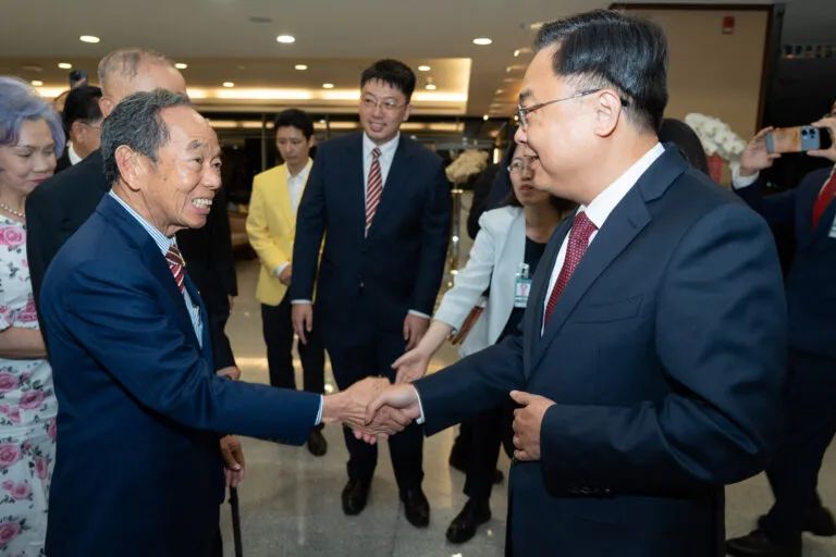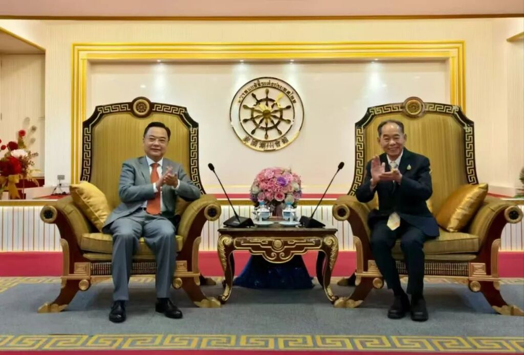 泰国中华总商会主席林楚钦、泰国潮州会馆主席徐惠深热烈欢迎张大使履新,表达了对祖籍国发展关注与支持,表示将继续全力配合好使馆工作,助力中泰民心相通和共同发展。