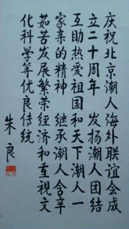 朱良部长虽身居庙堂高位,却从未忘怀根植于潮汕的乡土情怀。他曾担任国际潮团总会第十一届国际潮团联谊年会名誉主席及年会筹备委员会顾问,长期关怀总会在京两家潮团会员——北京潮人海外联谊会和北京潮商会的茁壮成长,深得海内外潮籍乡亲的敬重。朱良部长用他跨越百年的生命轨迹,镌刻了对国家、对家乡的深沉挚爱,这份赤子丹心,恰如韩江之水奔流不息,永远辉映在潮人精神谱系之中。