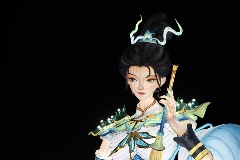 本次嘉年华以华服为媒、花灯为韵,创新推出“白天游园+夜间赏灯”的全时段体验模式。在开幕仪式上亮灯的“香江仙子”巨型花灯灯组,由四个大型花灯组成,主灯“紫霞仙子”高12.8米,运用国家级非遗自贡花灯技艺,结合华服等中国传统文化元素,融合现代光影技术,沿维港岸线陈列,形成独具特色的灯光景观。