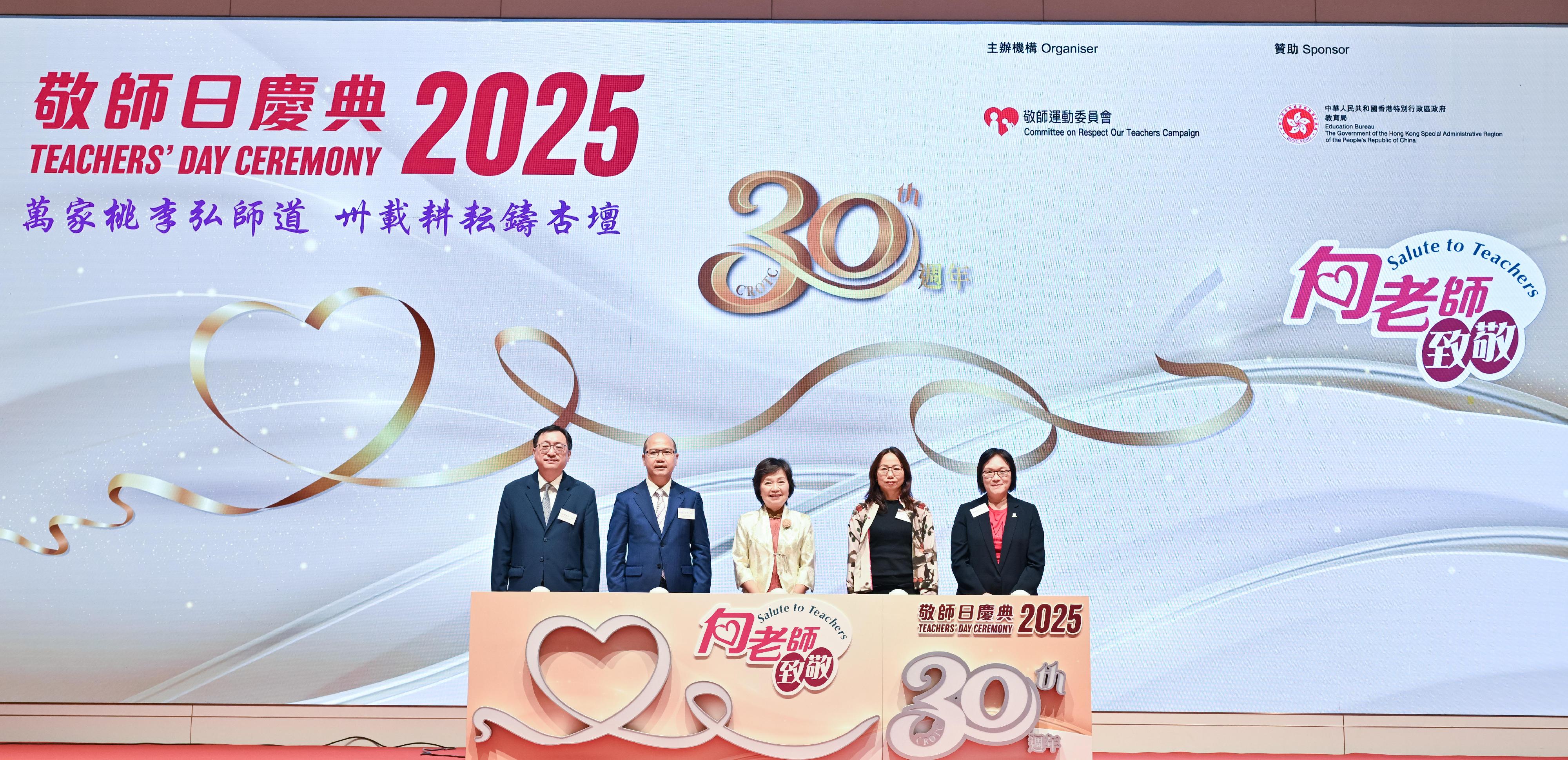 敬师运动委员会自一九九五年起每年举办表扬教师计划,至今已是第30届,计划旨在发扬尊师重道的精神。在计划下,每所中、小学、幼稚园及特殊学校可提名两名热心教学、表现卓越的教师接受嘉许。逾39500人次在历届获得表扬。今日出席庆典的其他主礼嘉宾包括署理教育局常任秘书长李碧茜、课程发展议会主席潘伟贤教授及家庭与学校合作事宜委员会主席方奕展。