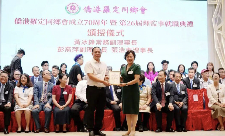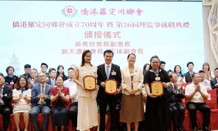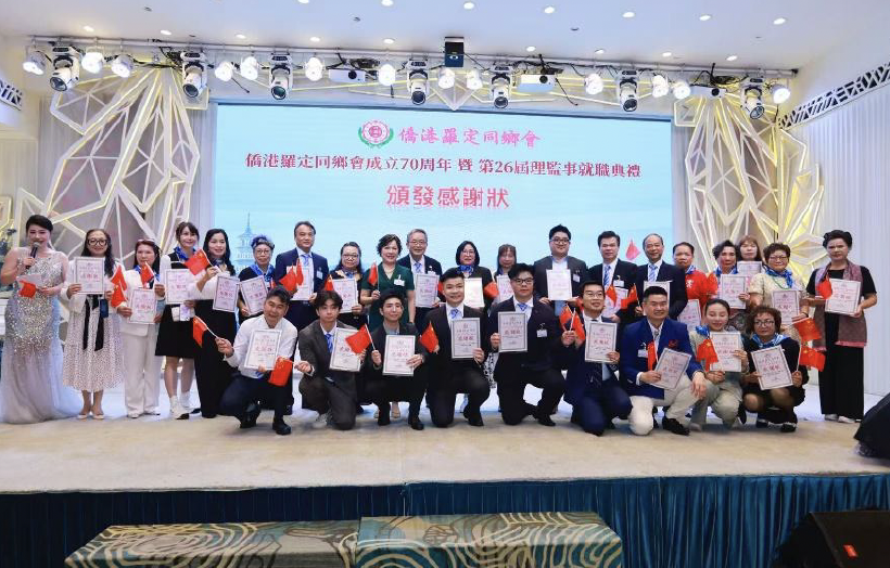 2025年9月26日,侨港罗定同乡会于香港尖沙咀The One 13楼煌府婚宴酒楼隆重举行成立七十周年庆典暨第二十六届理监事就职典礼。此次活动以“侨心相连罗定情深”为主题,来自家乡的领导、香港政商界代表、各界友好代表及广大乡亲共计约700人(56席)欢聚一堂,共同见证这一历史性时刻。