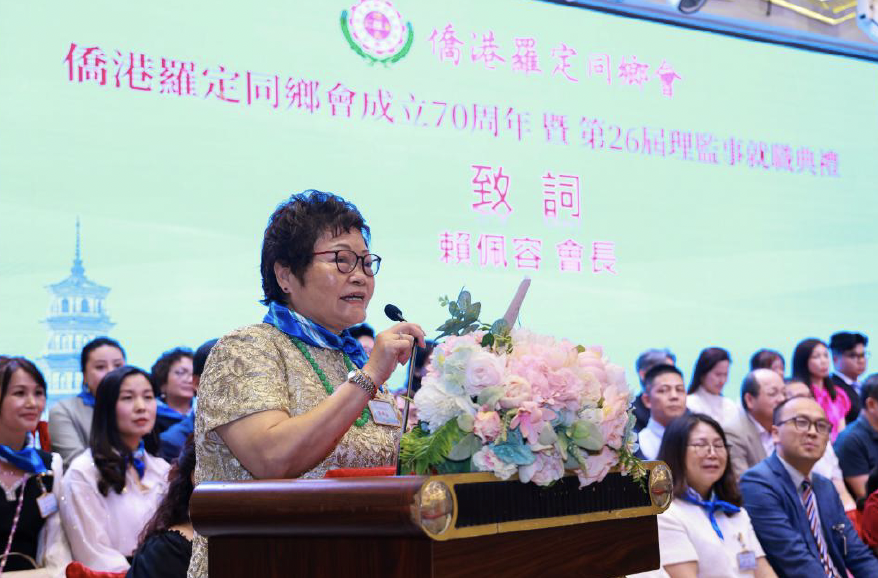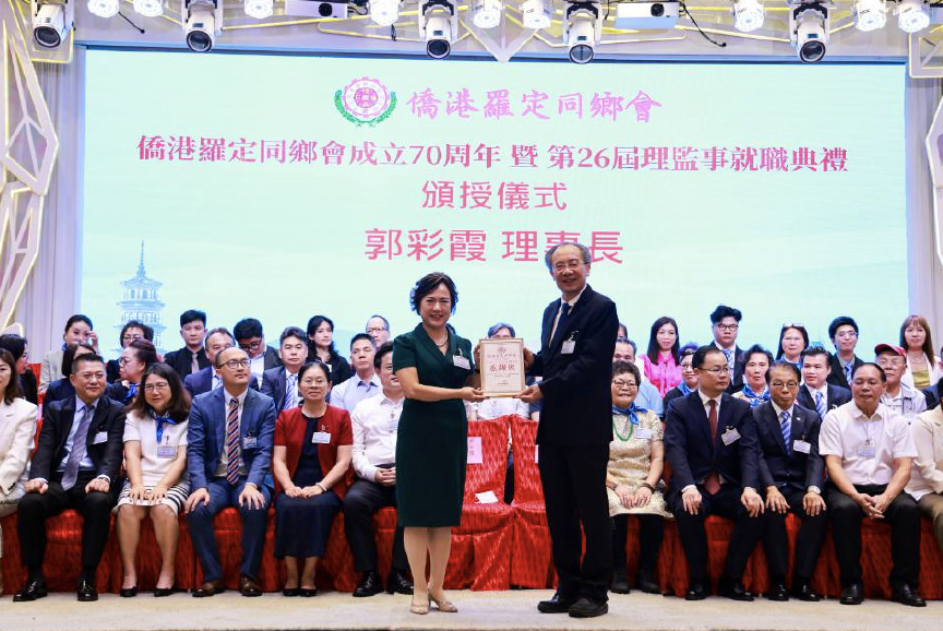 第二十六届理事长郭彩霞致辞表示,作为同乡会第二代领袖,将秉承其父郭鉴泉先生(永远会长)的初心,致力于团结乡亲、爱国、爱港、爱家乡;未来将强化青年事务与商务发展委员会,推动多元交流活动,助力乡亲融入大湾区发展,背靠祖国,联通世界;强调同乡会将继续履行社会责任,组织义工服务社区,并深化与内地的合作与联动。