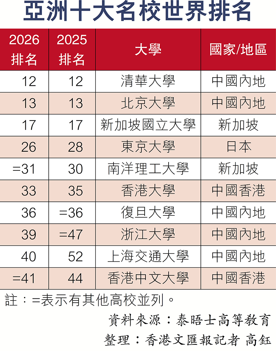 THE公布全球大学排名新榜单 本地加大投入创佳绩