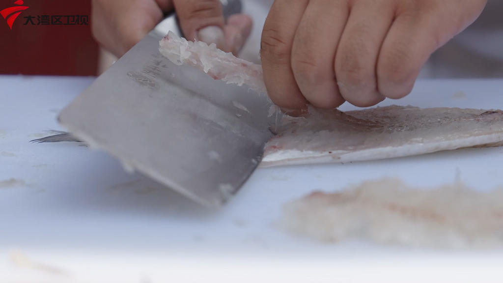 镜头下,一双摊开的手掌,诉说着所有故事——右手因常年与常温空气接触,是劳作的本色;左手因长期浸泡在5℃以下的冰水鱼浆中,呈现出异样的苍白。这是一双“一半白一半黑”的“阴阳手”,也是晶华鱼丸第五代传承人梁少忠,最独特的“职业印记”。