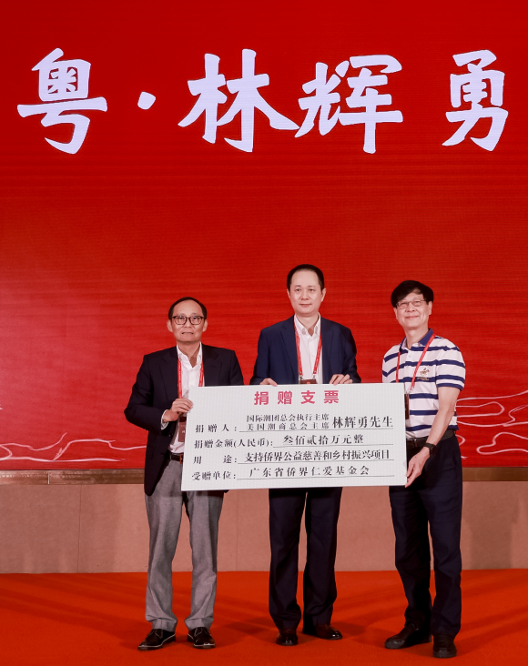 侨宴上举行了「侨爱南粤」捐赠仪式。国际潮团总会执行主席、美国潮商总会主席林辉勇先生向广东省侨界仁爱基金会捐赠320万元,支持侨界公益慈善事业和乡村振兴工作。