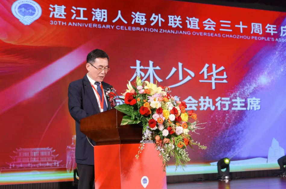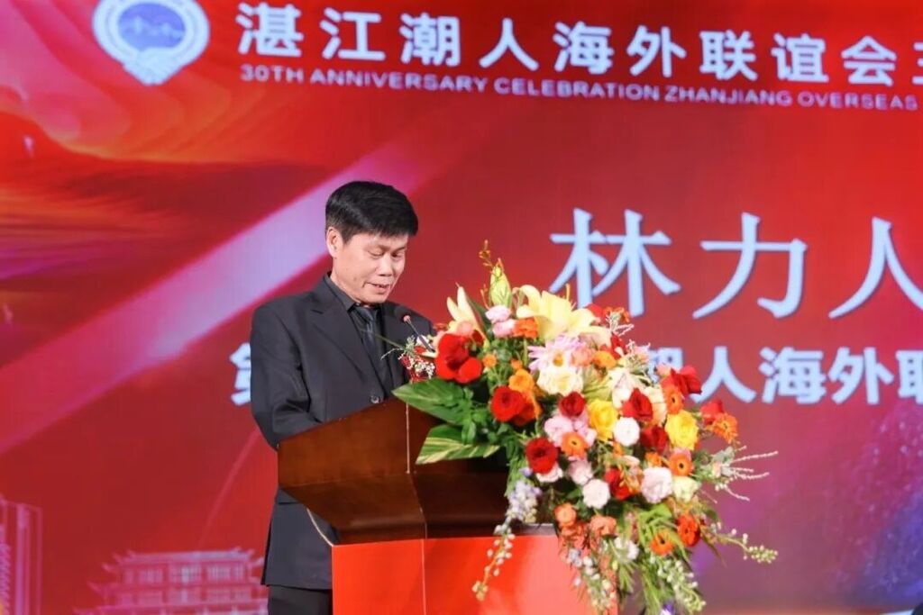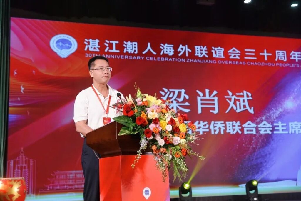 国际潮团总会执行会长林少华、湛江市侨联主席梁肖斌先后发表讲话,充分肯定湛江潮联会三十年来在联结海内外潮籍力量、促进地方经济文化交流、投身公益事业等方面的积极贡献,期待潮联会未来继续发挥桥梁纽带作用,为湛江与海内外地区的合作添砖加瓦。