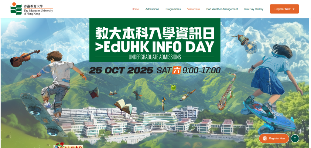 香港教育大学(教大)将于10月25日(周六)于大埔校园举办「教大本科入学资讯日2025」。今年活动将以「教育未来 今日启航」为主题,举办多场活动,包括:入学聊天室及入学讲座、校园导赏、展览、体验式学习活动和学生表演等。部分活动更提供网上同步直播,为学生、家长及教师提供教大的最新升学资讯及多元课程的资讯。