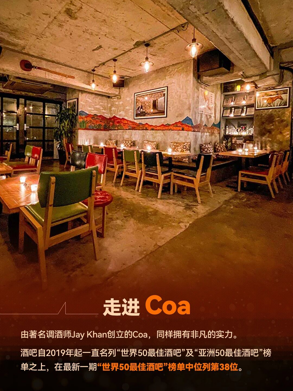 同样实力非凡的,还有由著名调酒师Jay Khan创立的Coa。