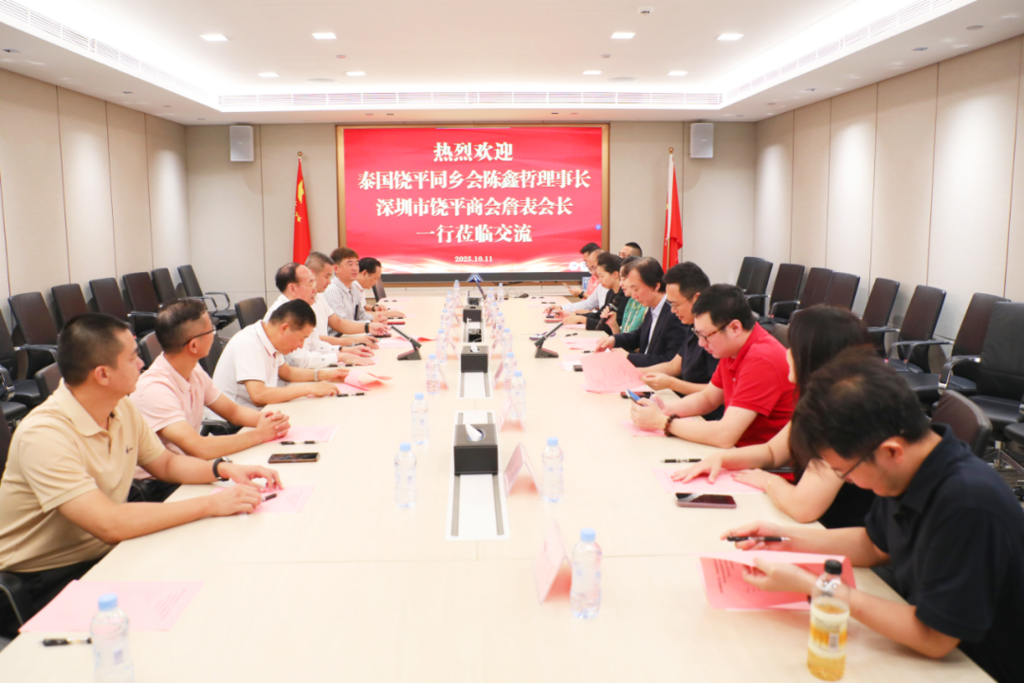 泰国饶平同乡会理事长陈鑫哲、深圳市饶平商会会长詹表一行于2025年10月11日到访国际潮团总会深圳秘书处、国际潮青联合会和深圳市潮汕青年商会,受到国际潮青联合会名誉会长、深圳潮青商会荣誉会长、海岸集团董事局主席李茂水等的热情接待。双方在海岸大厦座谈,就潮团建设、潮青事业发展等话题进行了热烈的交流。