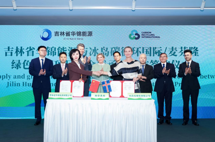 10月16日,正值冰岛总统哈德拉・托马斯多蒂尔访华期间,2025可持续全球领导者大会在上海召开,大会主题活动——中国-冰岛企业合作签约仪式同期举行,冰岛总统哈德拉・托马斯多蒂尔亲临现场。会上,吉林省华锦能源有限公司与冰岛碳循环国际(CRI)/麦芬隆完成绿色甲醇项目暨全球承购合作签约;中环新能源控股集团旗下中环新能源创新研究院有限公司,与吉林省华锦能源有限公司签署战略合作协议。