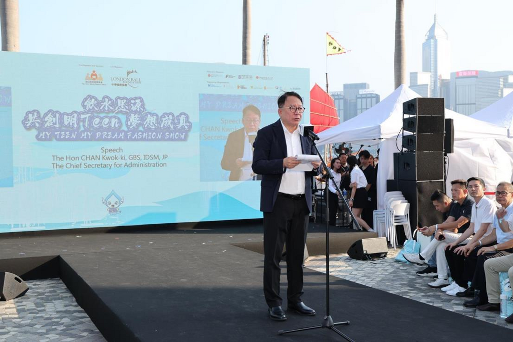政务司司长陈国基出席主礼,他致辞时表示,今日的时装秀,不单止是一场视觉盛宴,更加是一次文化交融的实践。“东江水”这条香港的生命线,支撑着香港经济持续发展,更象征着国家对香港永不间断的关怀。我们要回馈国家的关爱,为国家、为香港的发展贡献力量。其他主礼嘉宾包括:保安局局长邓炳强、民政及青年事务局局长麦美娟、全国政协常委、行政会议成员高永文医生、水务署副署长陈志远及油尖旺民政事务专员余健强。中华伦敦协会联合创立人及主席刘倩婷在活动中表示,此次活动不仅是对东江水供港六十载情谊的感恩,更是对香港多元文化与青年创意的肯定。透过时装秀与表演,我们见证了不同族裔和文化如何在香港这片土地和谐共融,共同创造美好未来。